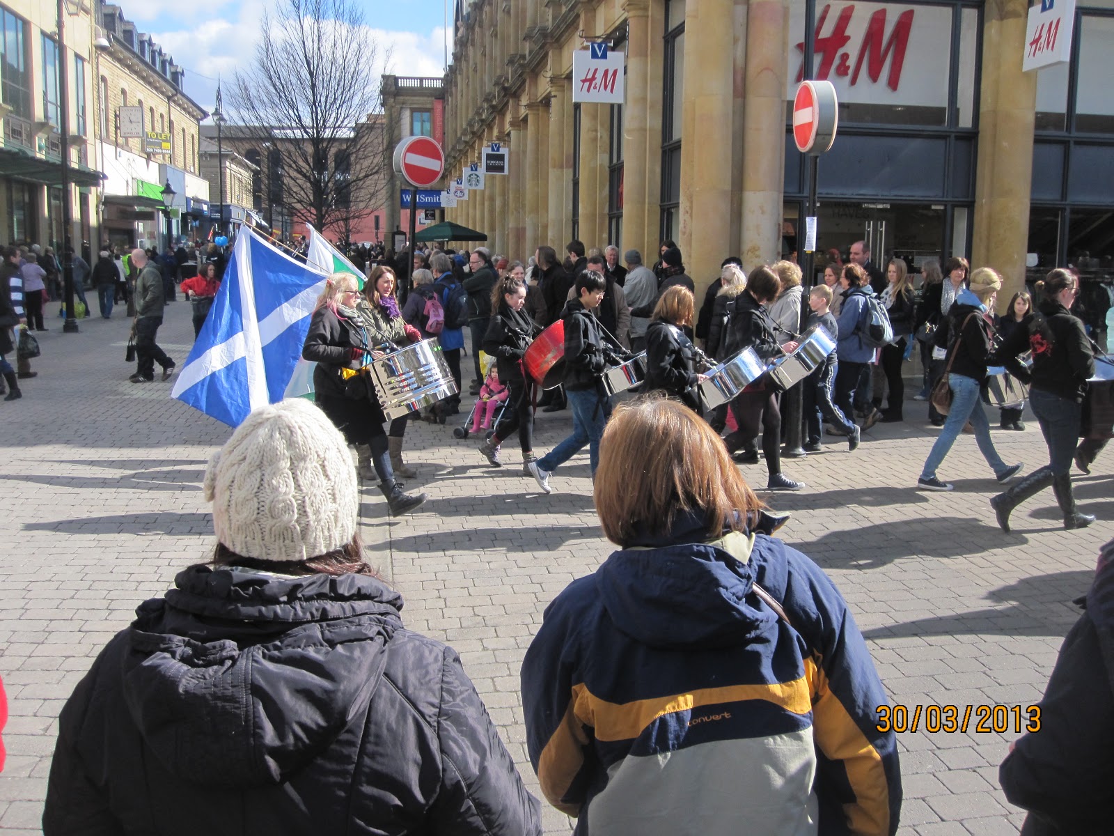 We only marched for 25 minutes, so after we finished we sat on the corner of the street and played some more.